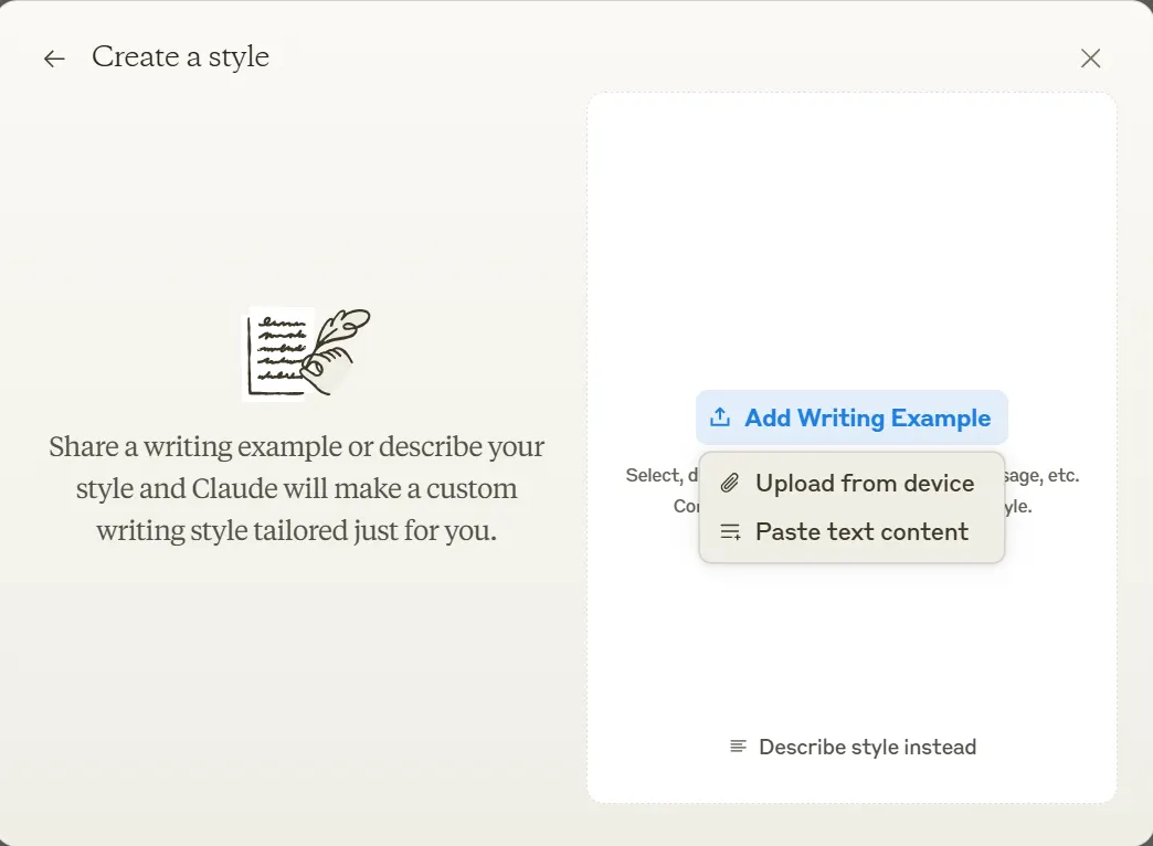 如果手邊沒有現成的文字,也可以直接 Describe style instead
